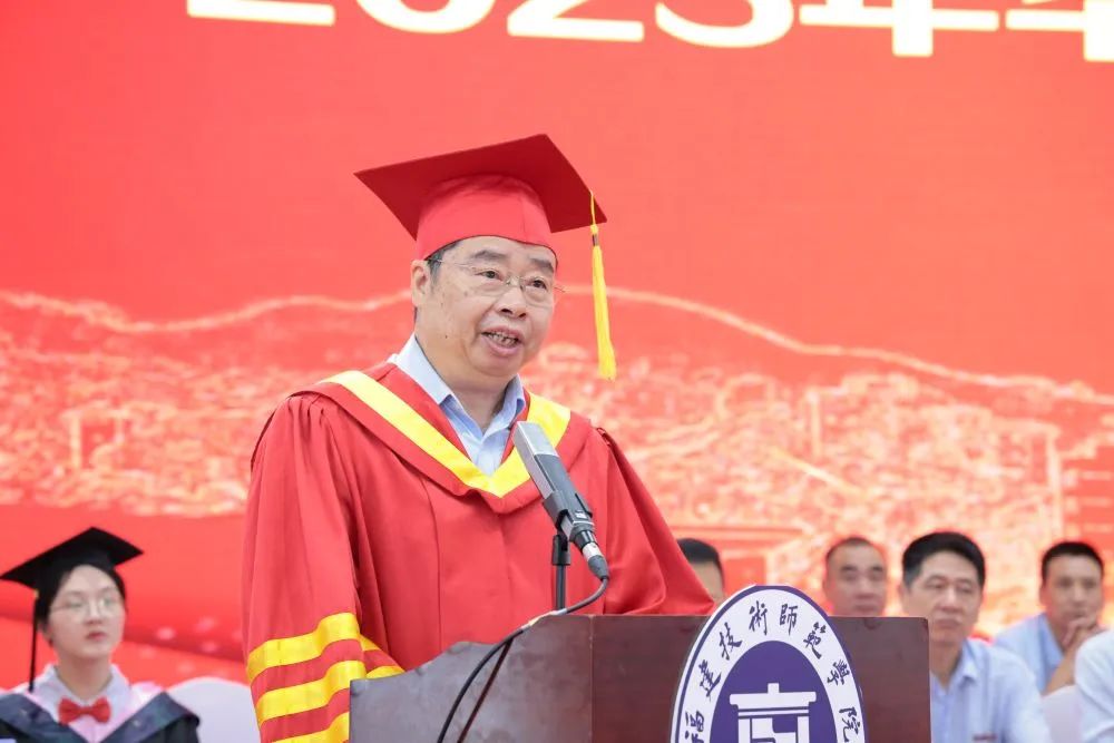 6月21日上午,我校2023年毕业典礼暨学位授予仪式在五马山校区球类馆举行。福建师范大学党委常委、副校长,原福建师范大学福清分校校长陈庆华教授受邀出席典礼并致辞。校领导赖海榕、廖深基、张翼、商光美、姜兴山出席典礼。校改发委成员,各单位党政主要负责人,教职工代表,毕业班辅导员和2023届毕业生参加了典礼。