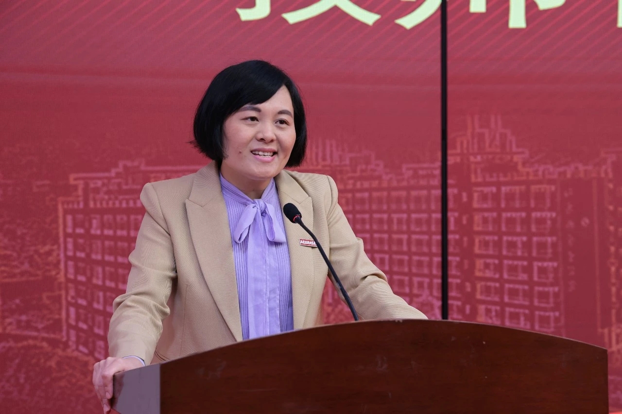 教师代表、福建省优秀教师魏秀华作了发言。她表示,作为一名在校工作二十年的教师,亲历、见证了学校的发展变迁,内心充满了骄傲和自豪。今后,将不忘初心、牢记使命,努力做“经师”和“人师”的统一者,为学校奋进一流,加快建设特色鲜明的高水平技术师范院校作出新的贡献。