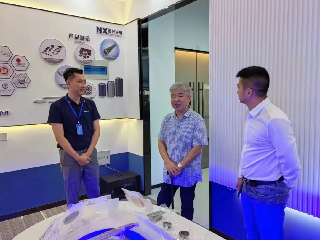 随后,赖海榕书记走访了入驻厦门大学科技园(福清)科技创新中心的校友企业——福州市诺兴光电材料有限公司,了解企业情况,并与赵晓虎校友亲切交流。赖书记对企业的发展思路表示肯定和赞赏,并表示,学校关心广大校友的发展并将为校友提供更多平台和支持,不断与校友企业建立更多的联结、拓展更大的合作空间。他希望在学校事业发展迈入新的阶段之际,能进一步汇聚各方资源特别是校友的力量,共同推动学校事业高质量发展。