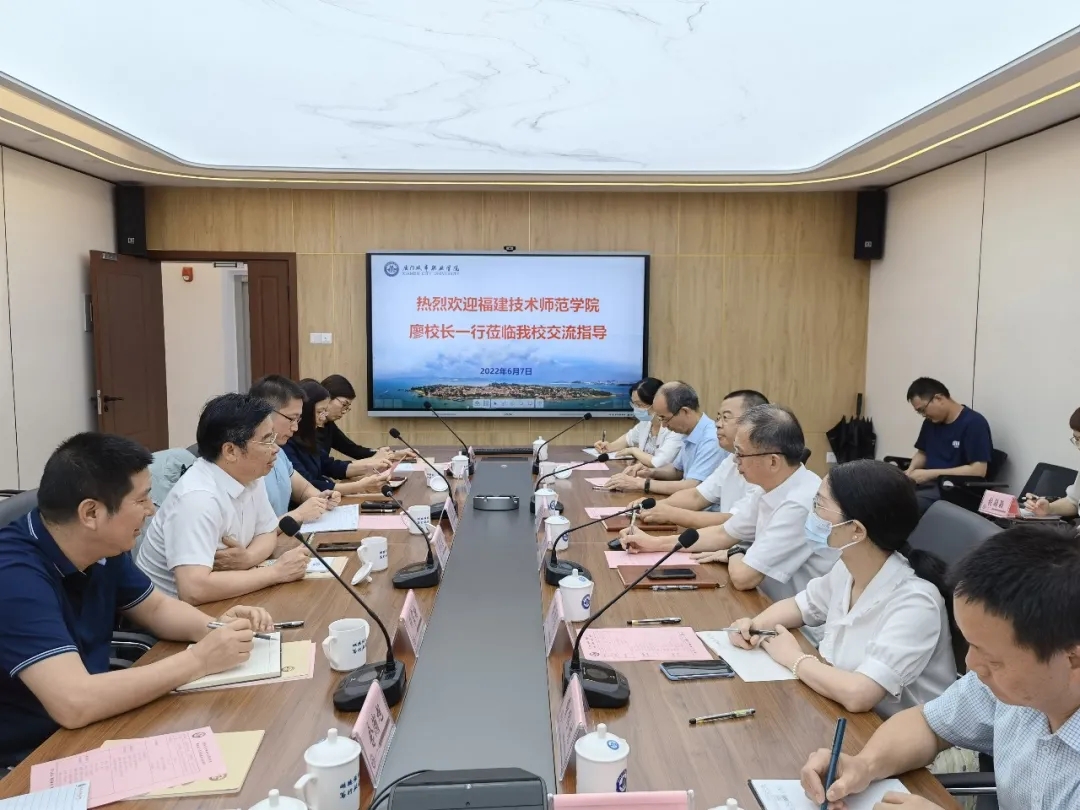 6月7日,校长廖深基带队前往厦门城市职业学院调研交流,受到厦门城市职业学院党委书记蒋先立、校长唐宁的热情接待。副校长陈志勇,党政办公室、教务处、继续教育学院、教育学院负责人参加了调研交流活动。