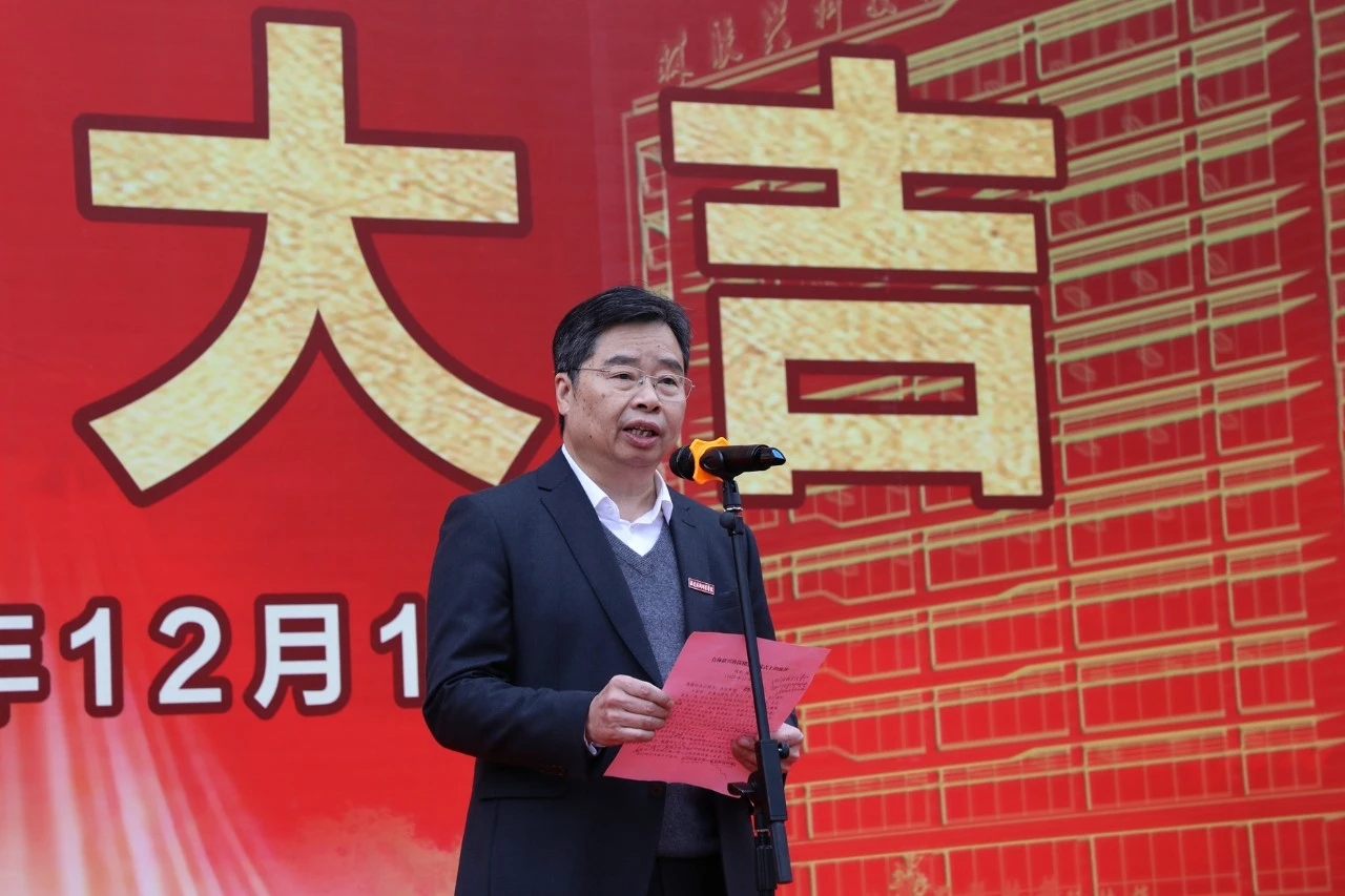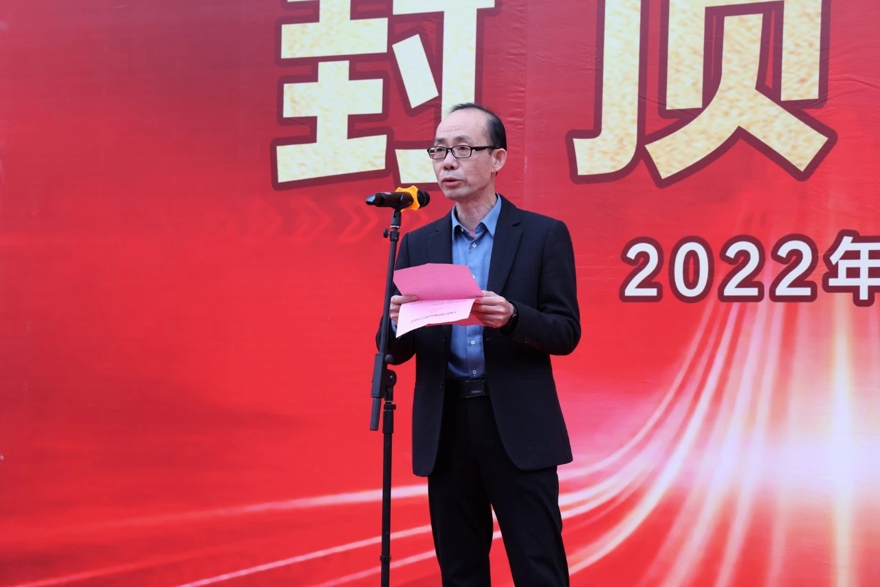校党委书记赖海榕宣布林联兴科技楼正式封顶。