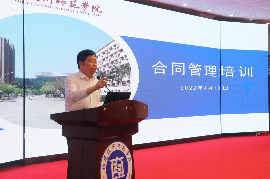4月13日下午,我校在五马山校区科学楼学术报告厅举行合同管理培训会议。校长廖深基出席会议并作了讲话。副校长陈志勇、商光美,党政办公室、教务处、科研处、人事处、财务处、后勤管理处、继续教育学院和各教学单位行政主要负责人、负责人,其他二级单位主要负责人,各单位合同管理员参加了会议。