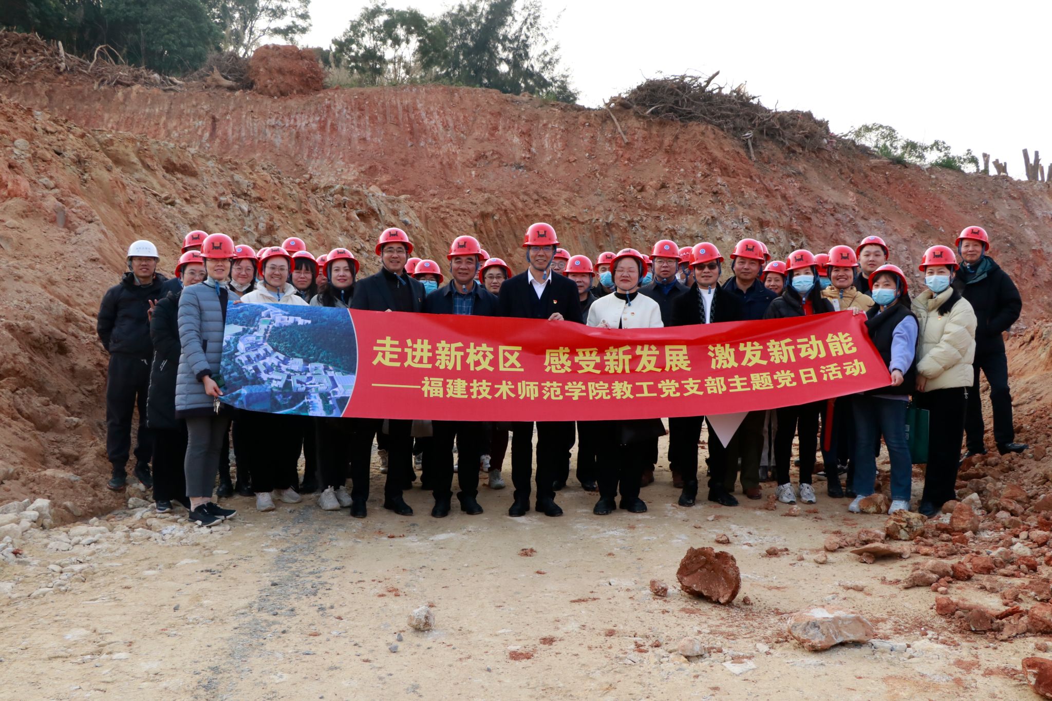 为持续巩固学习贯彻习近平新时代中国特色社会主义思想主题教育成果,让党员同志对我校五马山校区南面片区项目建设有更直观、深入的了解,教育引导党员厚植爱党爱国爱校爱岗的情怀,激励工作热情,提高责任意识和服务意识,充分发挥党员的先锋模范带头作用和党组织的战斗堡垒作用,党政办公室党支部于2月28日下午联合机关其他党支部组织党员前往五马山校区新校区建设腹地,开展“走进新校区、感受新发展、激发新动能”主题党日活动。校党委副书记、校长吴克寿以普通党员身份参加了此次支部活动。